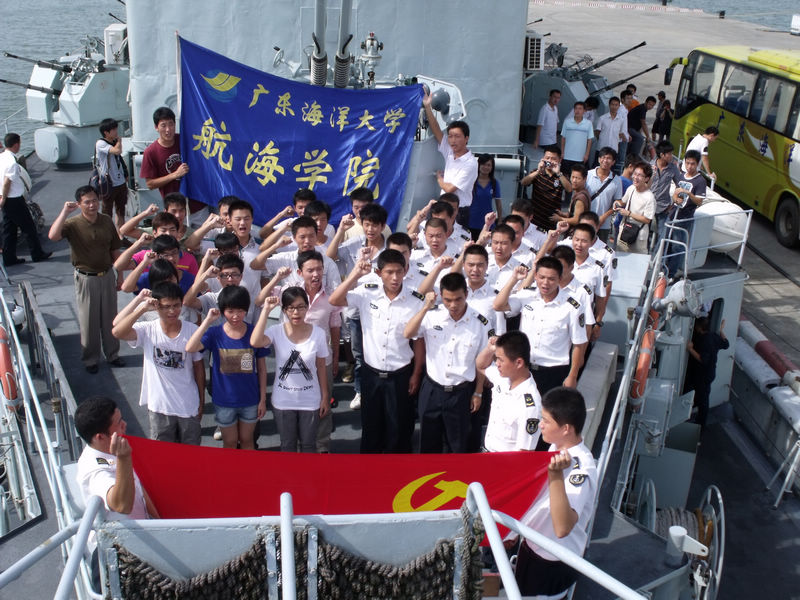 在“七一”党的生日即将到来之际,航海学院航海系第一党支部、轮机系第一党支部于2010年6月18日与军学共建单位南海舰队162舰联合举行了入党宣誓仪式。在航海学院党委副书记柯伟,政治辅导员孟庆龙、高磊、李明焜的带领下,参加广东海洋大学党校第二十五、二十六期培训班并顺利结业的六十余名预备党员、发展对象,与162舰的入党积极分子一起,对着鲜艳的党旗,以大海作证,庄严宣誓: