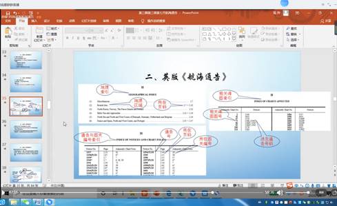 第三节课,孙珽老师主讲《航海学3》中的“航海通告”,讲解了中英版海图《航海通告》的出版机构、排版、内容、使用方法等,并展示了最新的2020年版的《航海通告》以及《英版航海图书总目录》(NP131),系统讲解了如何理解航海通告内容。孙老师上课语言清晰,精神饱满,采用问题导向法,紧密结合航海操作实践,师生互动融洽,授课通俗易懂,资料准备充分。