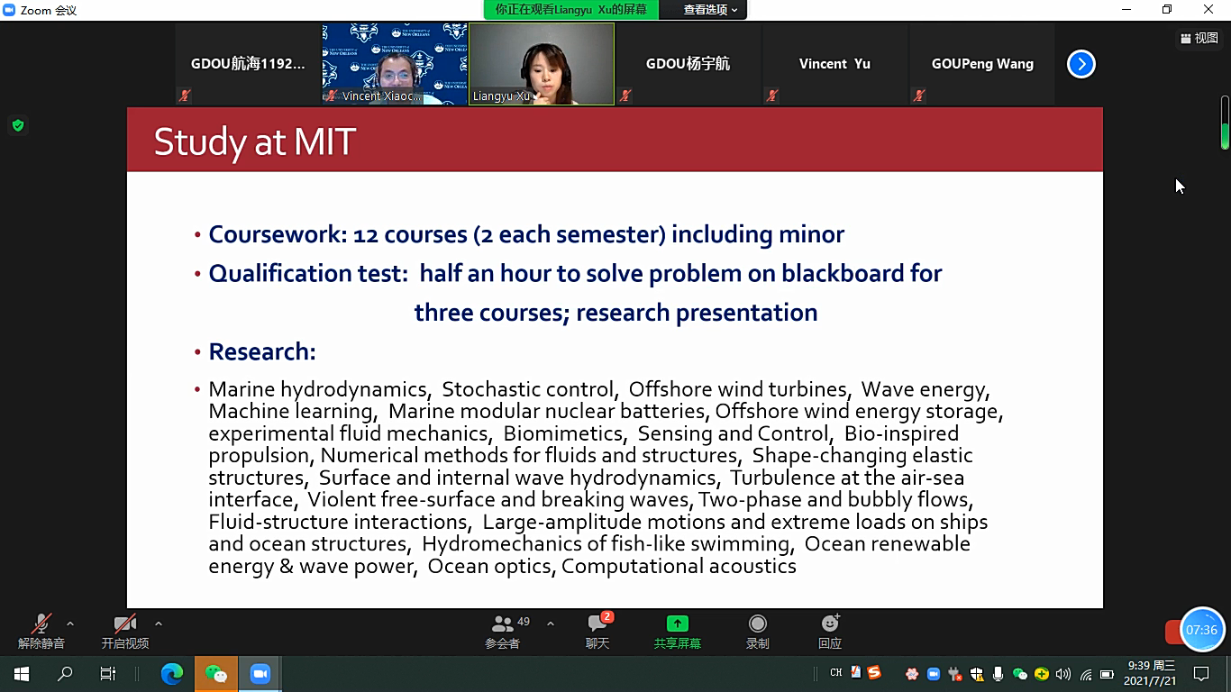 本次与新奥尔良大学(UNO)的船舶与海洋工程课程教学活动吸引了海运学院和海工学院共47位同学的踊跃报名,经过资格审查和面试后,择优录取了30名同学参与此次活动。在我院贾宝柱院长与新奥尔良大学余小川老师的共同努力下,此次暑期线上短期教学活动得到顺利开展。学生在教学参与过程中,积极的向知名教授和工程师学习先进的科学知识与方法,对船海工程领域的发展有了更深入、更全面的理解,开拓了视野和研究思路,提高了英语沟通能力。同学们纷纷表示,海外名校的线上课程有助于明确未来个人发展方向,为后续的就业与深造打下了坚实的基础。