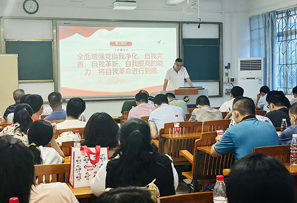 接下来召开的纪律教育学习月活动动员会上,张懿就2022年纪律教育学习月活动做了动员讲话,全面部署学院2022年纪律教育学习月活动。张懿从思想政治、教育教学和管理、学术道德、工作作风和生活作风等五个方面,对全体教职工提出了严格的要求,强调全体教职工要严格遵守意识形态和师德师风相关规定。要求所有教职员工要切实提高站位,深刻认识抓好纪律教育学习月活动的重大意义;要增强政治自觉,深刻领会纪律教育学习月活动的精神实质;要狠抓推进落实,确保纪律教育学习月活动取得实效。随后,张懿为全体教职工作了题为《勇于自我革命不断增强“四自能力”》的辅导报告。报告从勇于自我革命是我们党最鲜明的品格;勇于自我革命,关键在于保持正视问题的自觉,确保党不变质、不变色、不变味;全面增强党自我净化、自我完善、自我革新、自我提高的能力,将自我革命进行到底等三个部分进行阐述,指出要时刻保持全面从严治党永远在路上的政治自觉,坚持以伟大自我革命引领伟大社会革命,以伟大社会革命推进伟大自我革命,进一步增强党的“四自能力”,在自我革命中把党锻造得更加坚强有力。