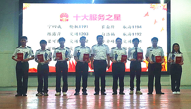 “十大学习标兵”“十大励志之星”“十大服务之星”“科创之星”“半军管标兵”“旗舰班级”“旗舰宿舍”颁发了奖杯及证书。