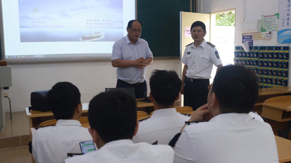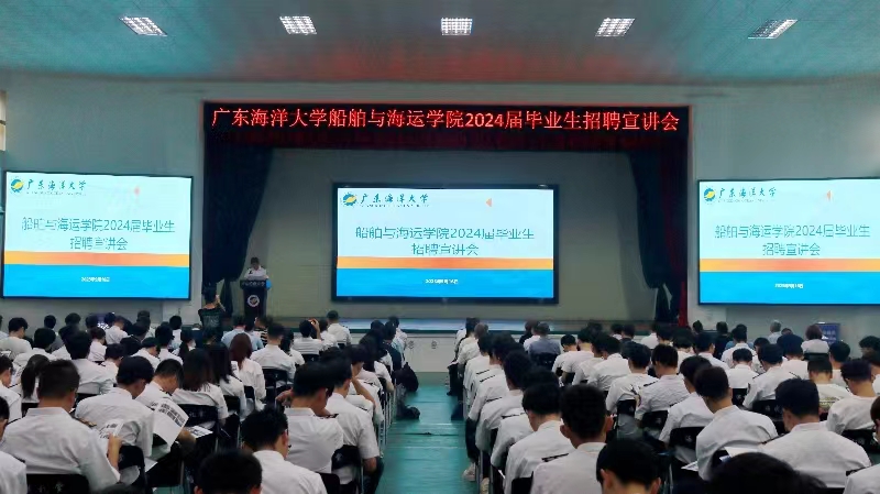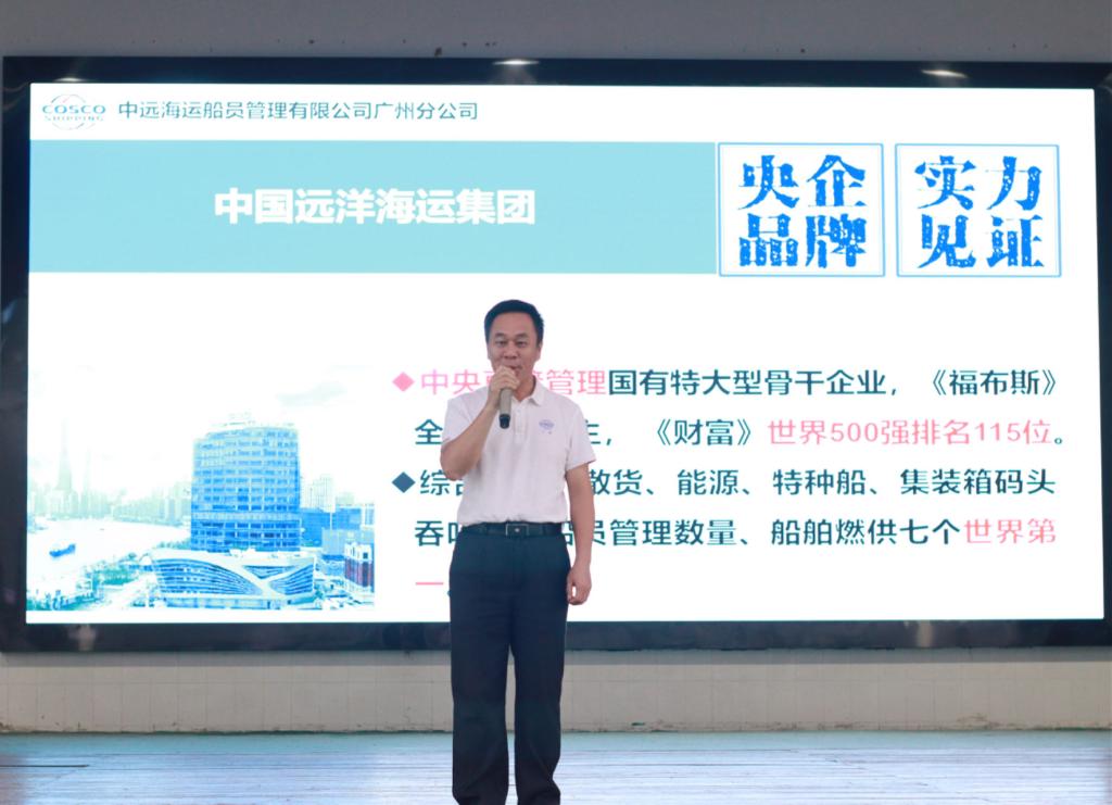 随后,中远海运船员管理有限公司、广州航道局等用人单位针对学生的求职意向,通过宣传片、ppt等方式逐一介绍了自己的基本情况、发展战略、特色业务、员工发展通道、人才培养及薪酬福利等。下午,各用人单位在招聘课室与学生进行了面对面洽谈交流。