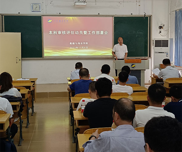 在海滨校区教学楼102室召开本科审核评估动员暨工作部署会,学院党政领导及全院教职工参加会议,会议由学院院长贾宝柱主持。