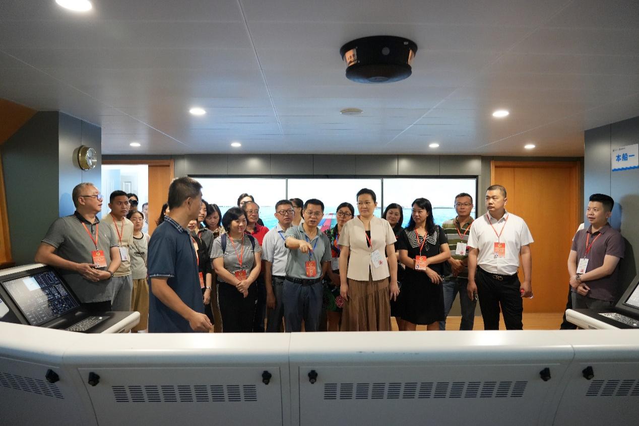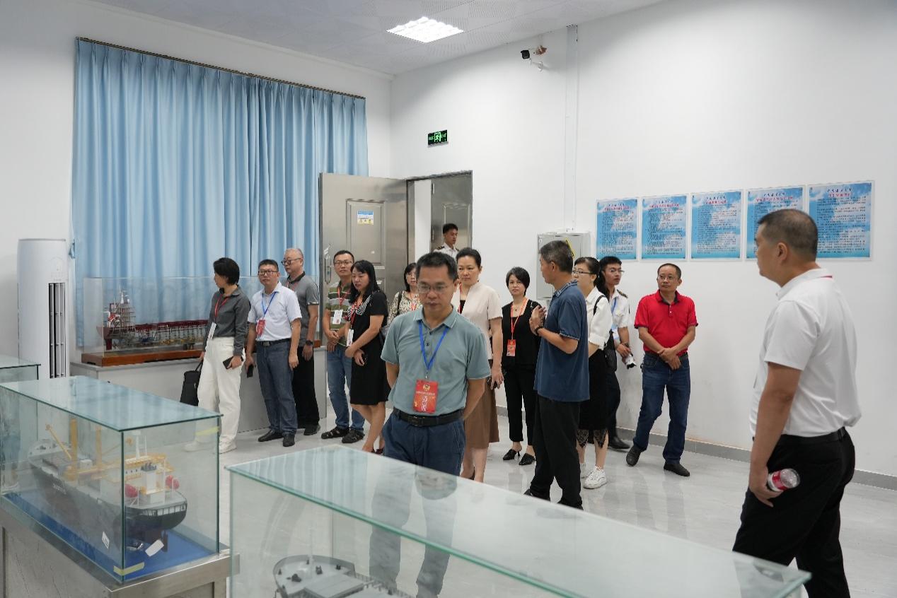 代表们在基地老师的讲解下参观了航海模拟器、轮机模拟器和船模室等场所,他们不仅观察了各类船舶的构造,丰富了对船舶种类及其特性的认知,更加了解了海员如何精准驾驭万吨巨轮的技艺,并在模拟驾驶台上亲身体验了各种海况下船舶操纵的特点与挑战,进一步加深了对航海科技复杂性的认识,逼真的模拟场景让每位代表赞不绝口。