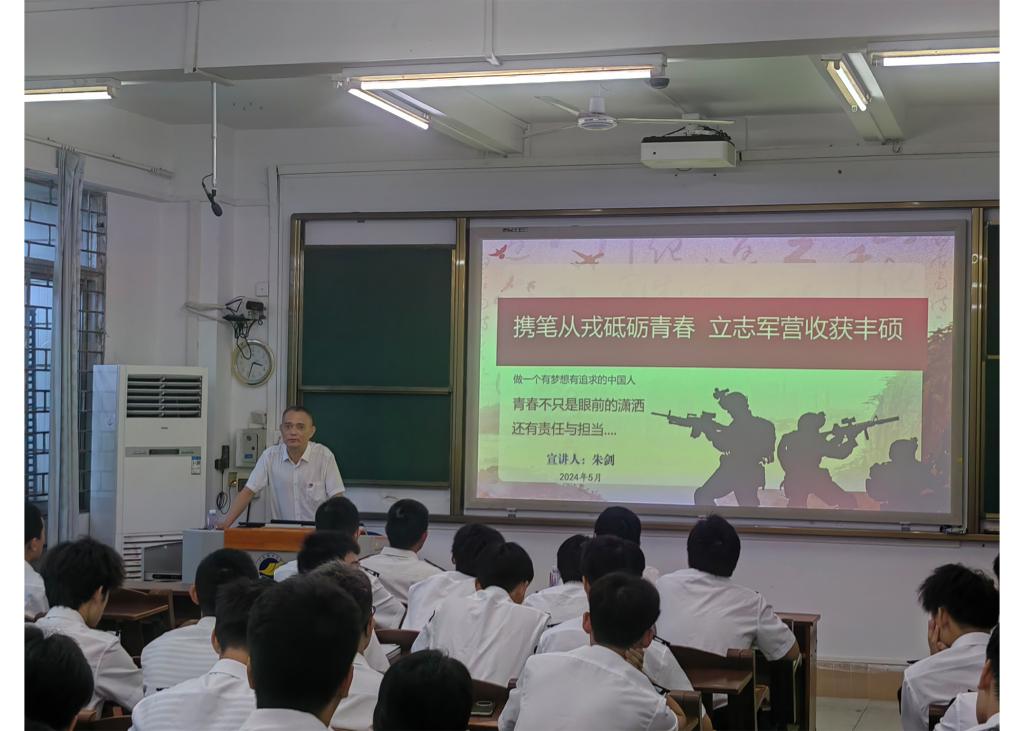 本次宣讲会邀请了广东省国防教育宣讲团专家朱剑副教授作为主讲,他围绕军人的使命和当前安全形势、参军入伍的十大收获、从军所享受的权益等三个方面向同学们详细介绍了大学毕业生参军入伍的优惠政策,鼓励同学们积极投身国防和军队建设,并为在场学生进行答疑解惑。