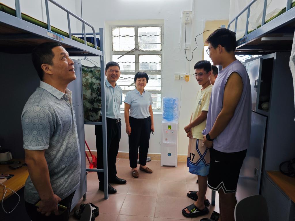 学院重点排查了学生宿舍门窗是否存在破损等安全隐患,并向同学们现场讲解了台风防范要点,提醒大家增强安全意识,及时关注台风动态,非必要不外出,紧闭门窗,妥善安置阳台易坠物品,提前备足食品、饮用水等应急物资。