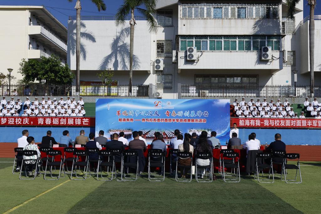 在海滨校区举办了“船海有我-我与校友面对面”暨半军管成果展示活动。学院领导邓朝晖、齐昊、李荣辉、袁剑平,湛江海事局人事教育处处长刘志国、科技信息处处长张计划、遂溪海事处处长邓平贵、行政服务中心副主任董少峰,渤海轮渡集团党群工作中心主任郝长伟,北部湾大学后勤保障处副处长董海亮,南海救助局湛江救助基地办公室主任牛念喜,南京西普德船舶设计有限公司董事长王东兴,南京工程学院教授许江涛等校友及2025级航海类专业全体学生共500余人齐聚一堂,共庆盛典。活动由齐昊主持。