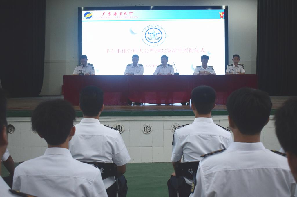 随后,齐昊为22级学生代表授予了“一道杠”校衔,并作了《统一思想,严格管理,不断提升船海学院半军事化管理水平》的专题教育。强调同学们要提高政治站位,充分认识学院开展半军管工作的重要性和必要性。要主动作为,尽快适应学院半军管环境;要严以律己,严格遵守学院半军事化管理的各项规定。
