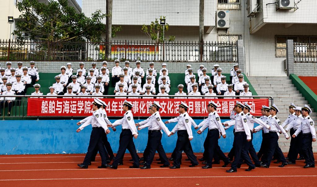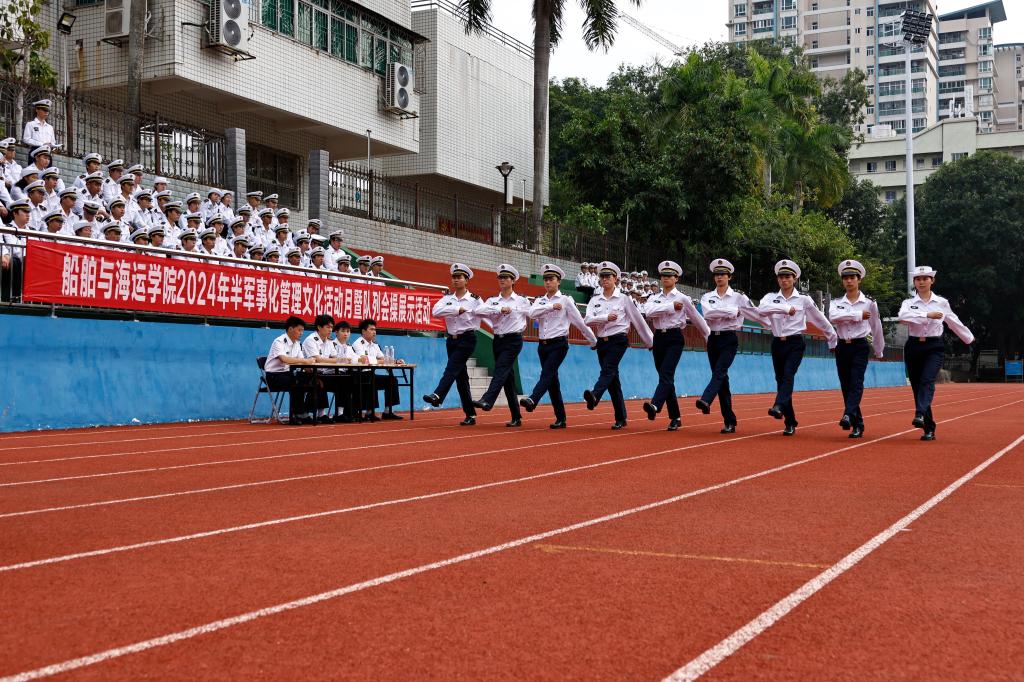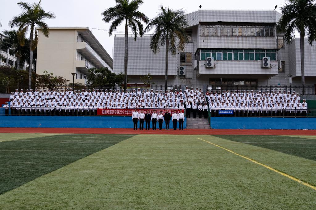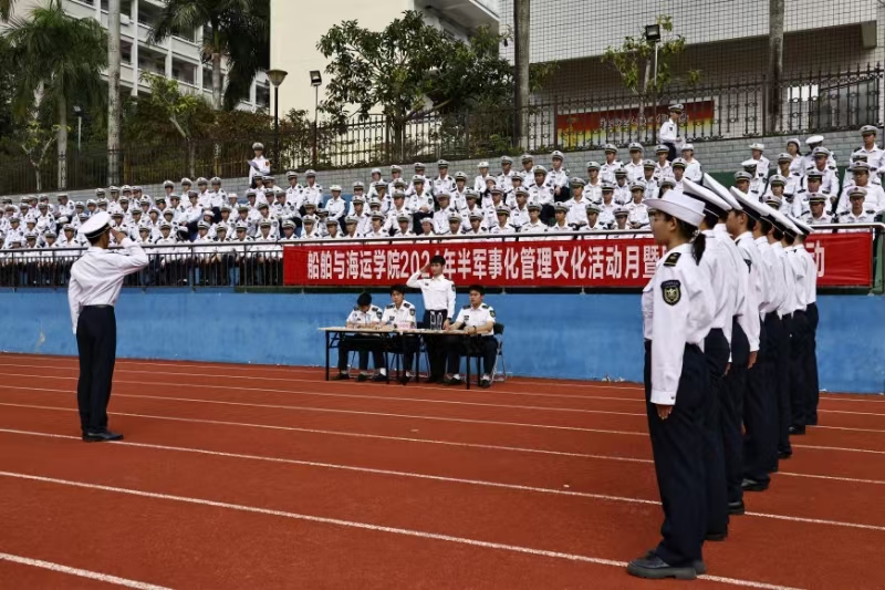 12月7日下午,a片无码 在海滨校区运动场举行了“2024年半军事化管理文化活动月暨队列会操展示活动”。学院党委书记邓朝晖,正处级辅导员、党委副书记齐昊,校学生工作部学生管理科科长王志,校党委武装部军事教育科负责人张亚斌,学院半军管大队长江涛、副大队长吴捍泽,院团委书记郑祯远,辅导员邵建勋及2024级海上专业300余名同学等参加了活动,活动由江涛主持。