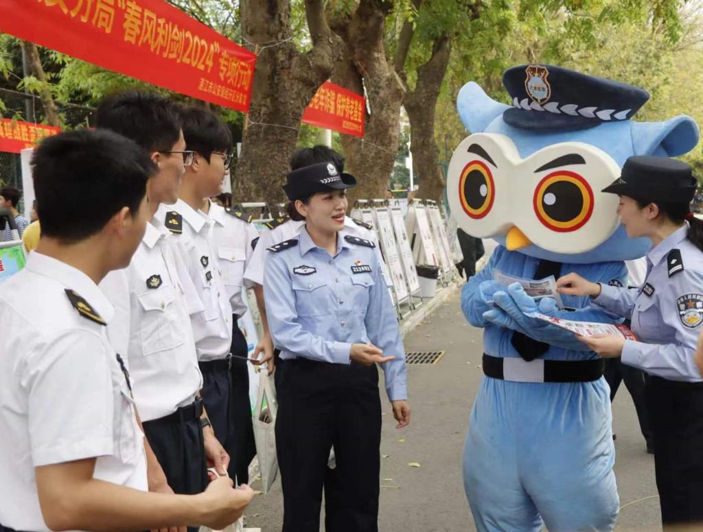 迎接个全民国家安全教育日全面提升学生的法治观念和安全意识,营造海滨校区良好的法治氛围4月12日下午,湛江市经开区政法委联合经开区多部门在海滨校区开展维护校园安全,拒绝不法侵害主题普法宣传教育活动。湛江经开区政法委专职副书记洪国兴、赵秋林,扫黑办副主任许小燕,学校保卫部副部长徐法军,a片无码 正处级辅导员、党委副书记齐昊,海滨校区保卫科科长乔明海船海学院半军管副大队长刘抒睿、江涛辅导员陈方园出席活动。