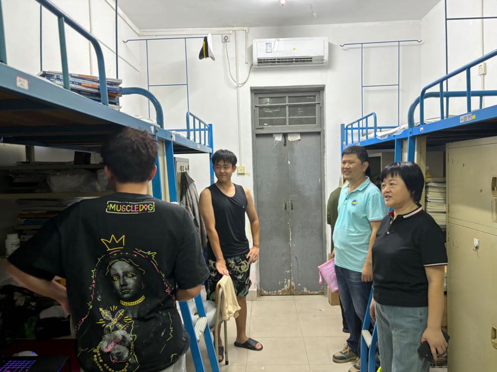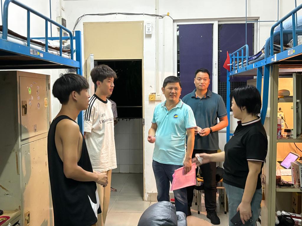 为深入了解新学期老生返校情况和新生宿舍安排,了解学生学习、生活和思想动态等情况,表达学院对学生的深切关怀。9月1日晚,学院党委书记邓朝晖,正处级辅导员、党委副书记齐昊带领辅导员深入学生宿舍,亲身实地考察,听取学生的意见和建议,确保学生在新学期能够以最佳的状态投入学习和生活。