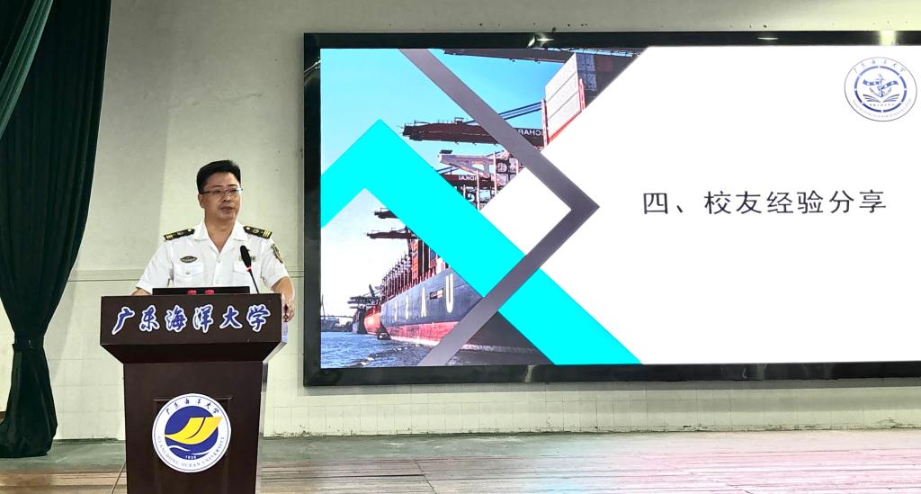 随后,与会人员集中观看了广东海事局宣传片,全方位了解了广东海事局履行水上交通安全监督管理、船舶及相关水上设施检验和登记、防治船舶污染和航海保障等行政管理和执法职责的有关情况。金震霖详细介绍了2025年度公务员招录招聘计划,职位和岗位设置、专业需求、工作职责等情况。在广东海事系统工作的优秀校友孙自伟、刘志国分享了海事工作的宝贵经验和深刻体会。