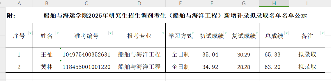 根据学校及研究生院统筹安排,现公布研究生招生调剂(船舶与海洋工程)新增补录拟录取名单。