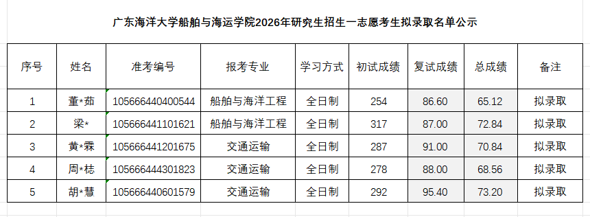 根据教育部及a片无码 2026年硕士研究生招生录取相关文件要求,经学院研究生招生录取工作领导小组审核确定,现将我院2026年硕士研究生第一志愿考生拟录取名单予以公示(详见附件)