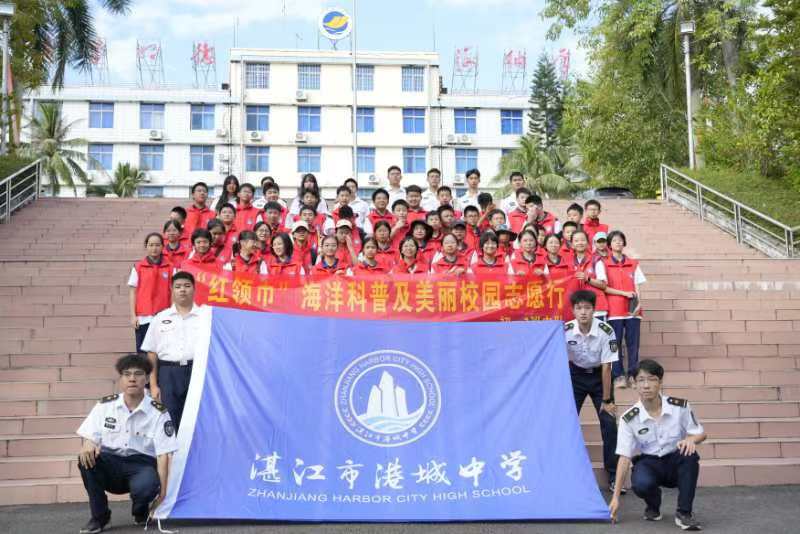 2024年11月17日,湛江市港城中学的60余名初中生,怀揣着对海洋世界的好奇与向往,前往广东海洋大学航海科技文化科普教育基地进行了一次别开生面的科普参观活动,并同步开展了美丽校园志愿服务行动。