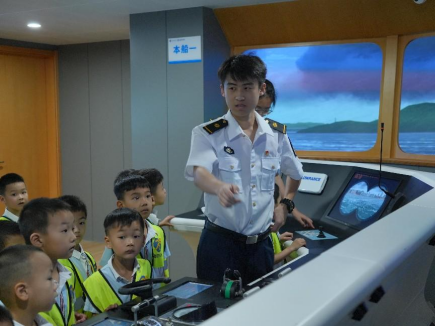 而最让孩子们兴奋不已的当属航海模拟室环节了。他们终于有机会亲身体验驾驶的乐趣,坐在模拟驾驶台前,仿佛自己就是一名掌舵的船长,在虚拟的海洋世界里乘风破浪。志愿者在旁耐心指导,帮助孩子们操作,让他们对航海驾驶有了更真切的感受,也进一步激发了他们对航海事业的向往之情。