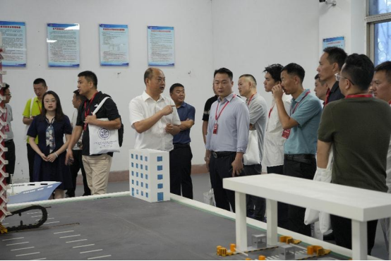 在轮机模拟实验室,贾院长逐一介绍了模拟设备的功能及应用场景,从轮机系统仿真运行到故障诊断实训,全方位展示了学院在实践教学中的创新举措。