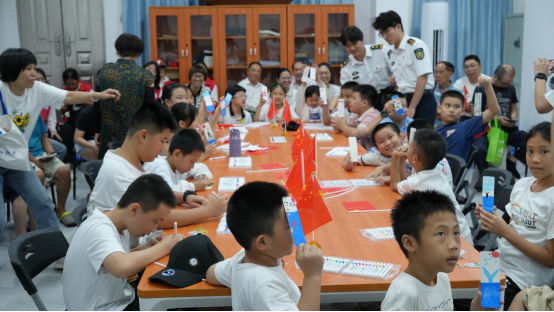 第三站,同学们来到了基地会议室,一场精彩的航海文化科普课堂在这里拉开帷幕。志愿者们以郑和下西洋这一伟大壮举为切入点,带领大家穿越历史的长河,领略波澜壮阔的航海史。从古代的帆船到现代的巨轮,从航海技术的演变到航海文化的传承,每一个故事都让同学们听得如痴如醉。课堂最后,志愿者讲述了广东海洋大学优秀校友陈宏泽先生的先进事迹,鼓励小朋友们以这些优秀榜样为标杆,努力学习,不断提升自己,将来成为对国家和社会有用的人才。