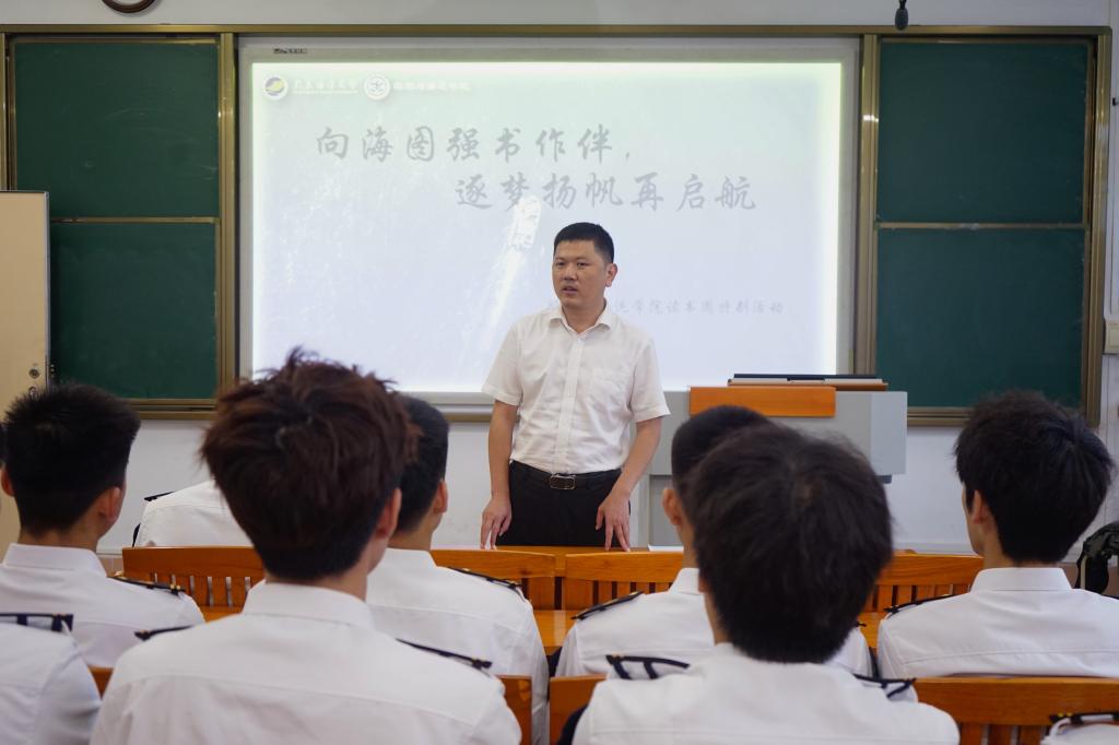 开展了“向海图强书作伴,逐梦扬帆再启航”系列活动。船海学院正处级辅导员、党委副书记齐昊,半军管副大队长刘抒睿、江涛,辅导员陈方园等200余名师生参与了活动。