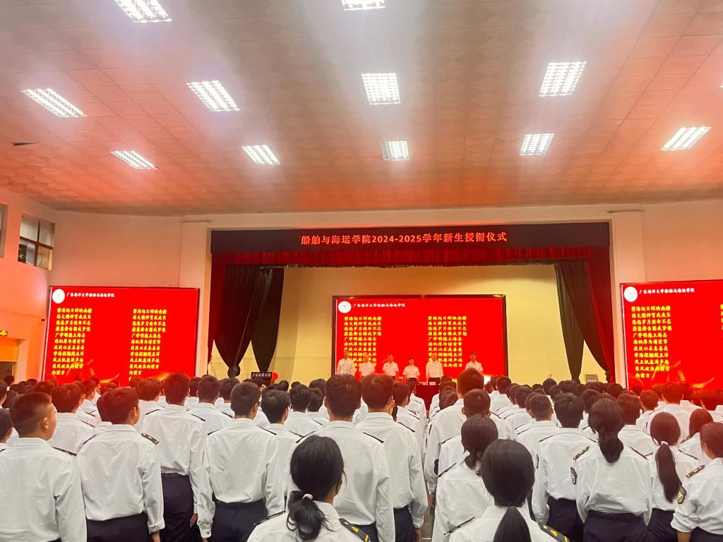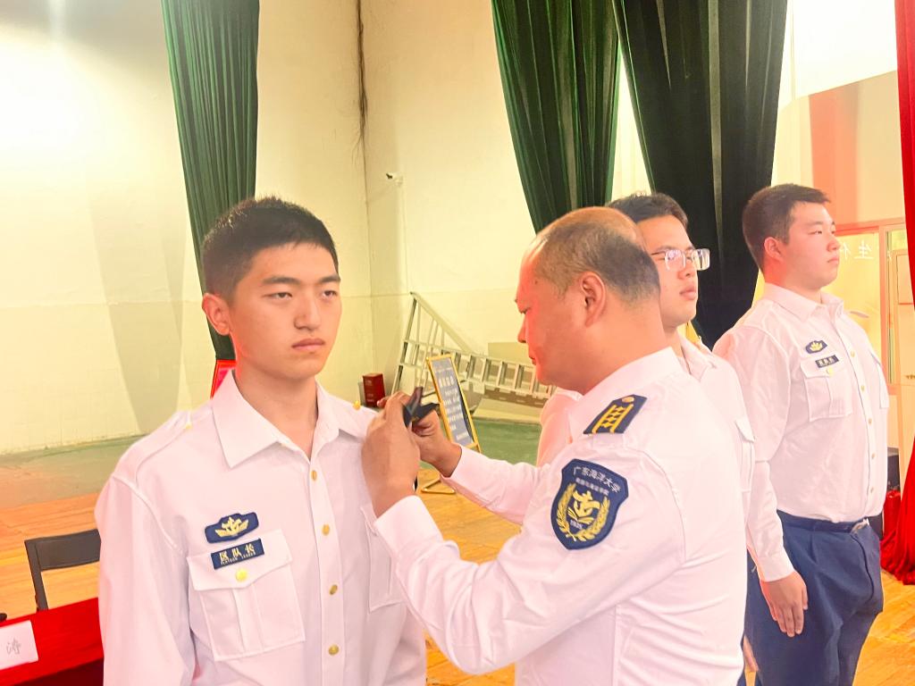 首先,齐昊宣布了新一届半军管学生干部名单,随后,贾宝柱为半军管学生干部和24级学生代表佩戴了“一道杠”校衔。最后,邓朝晖总结讲话,强调半军管对于航海专业学生的重要意义,希望同学们严格遵守学院半军事化管理的各项规定,刻苦训练,认真学习,为建设海洋强国、交通强国贡献自己的力量。