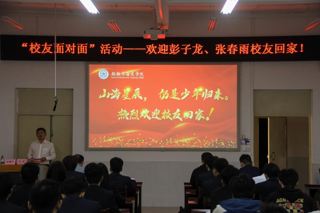 举办“船海有我——我与校友面对面”活动。学院正处级辅导员、党委副书记、纪委书记齐昊,2007级轮机工程专业校友、江苏科技大学副教授彭子龙、张春雨副教授,辅导员孟庆龙、郑祯远以及青马工程班学员、学生代表等80余人出席本次活动。活动由齐昊主持。