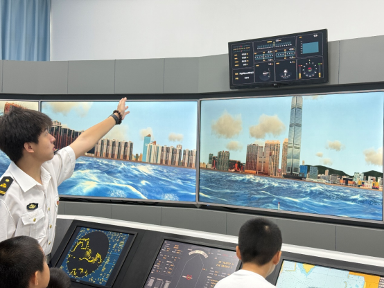 活动的最后一站是航海模拟器的体验环节。小朋友们兴奋不已,纷纷化身小小船长,坐在模拟驾驶舱里,紧握操纵杆,仿佛真的驾驶着巨轮在波涛汹涌的大海中乘风破浪。他们时而专注地观察着屏幕上的海况,时而果断地调整航向,脸上洋溢着自信和喜悦。在这个充满趣味的体验中,一颗航海的种子在小朋友们心中深深扎根,相信未来一定会收获满满的希望与成就。
