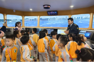 小小的身影揣着好奇,清脆的笑声洒满庭院。2025年12月11日,广东海洋大学航海科普基地迎来了一群活力满满的幼儿园小朋友,一场 “双线启蒙 + 分线沉浸” 的航海科普之旅欢乐启航!先赴船锚之约、探钻井平台奥秘,再兵分三路解锁航海乐趣 —— 动漫课堂看船奇、模拟驾驶当船长、船模室里识船韵,让海洋与航行的魅力,在孩子们的探索中悄然绽放。