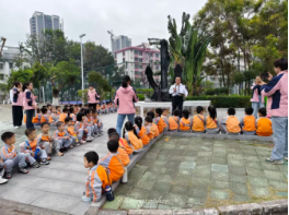 基地广场上,黝黑厚重的船锚雕塑刚映入眼帘,就引来孩子们阵阵惊呼:“哇!这个铁钩子比我还高!” 大家争先恐后围拢过来,小手触摸着冰凉粗糙的钢铁纹路,踮脚打量锚爪的奇特形状。讲解员蹲下身用童趣语言科普:“这是大船的‘超级安全带’,锚爪像有力的大手,能牢牢抓住海底泥沙,就算上万吨巨轮也能稳稳固定!” 孩子们听得目不转睛,纷纷举手追问 “怎么扔到海里”“怎么拉上来”,讲解员用手势模拟下放、抓取、回收的过程,生动演示让知识点瞬间变得易懂,清脆的笑声在雕塑旁久久回荡。